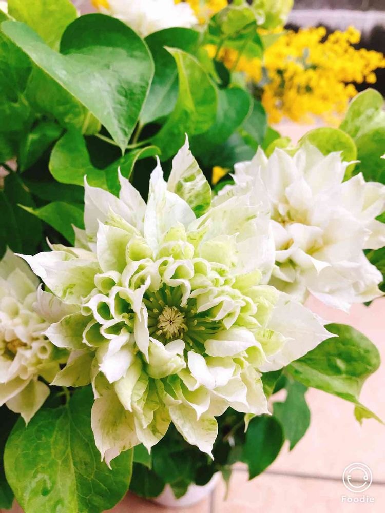 白に斑入りみたいに緑も入っていい感じの色に😊しばらく鉢で楽しもうと💕