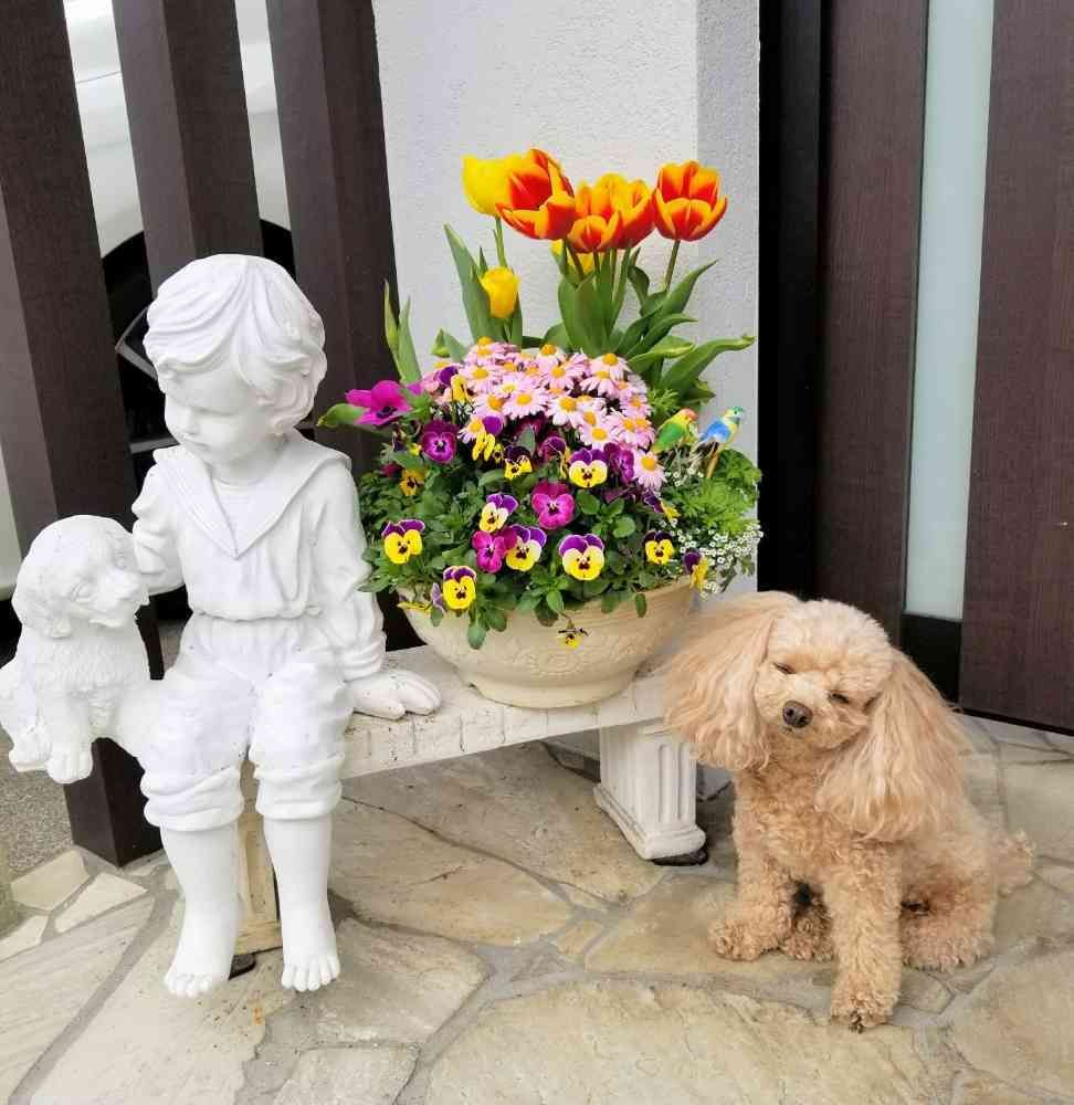 チューリップの寄せ植え 春爛漫で素敵✨うちのチューリップはまだこれからです🎵