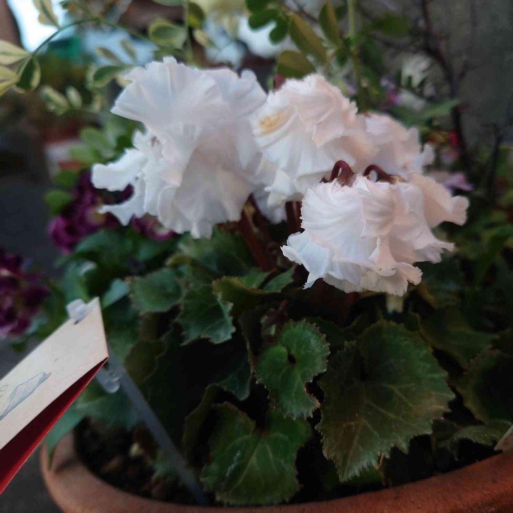 こちらも寄せ植えよりシクラメンのクロシェット。