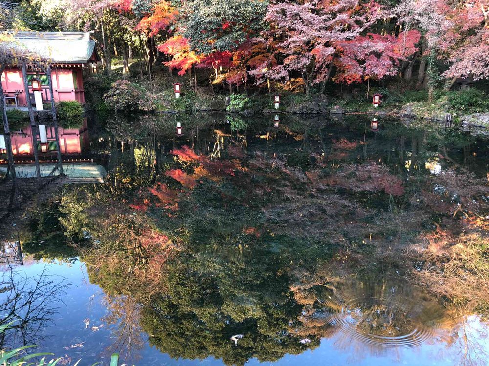 静かな水面に映る紅葉と青空が綺麗でした🍁🍁🌳🌳