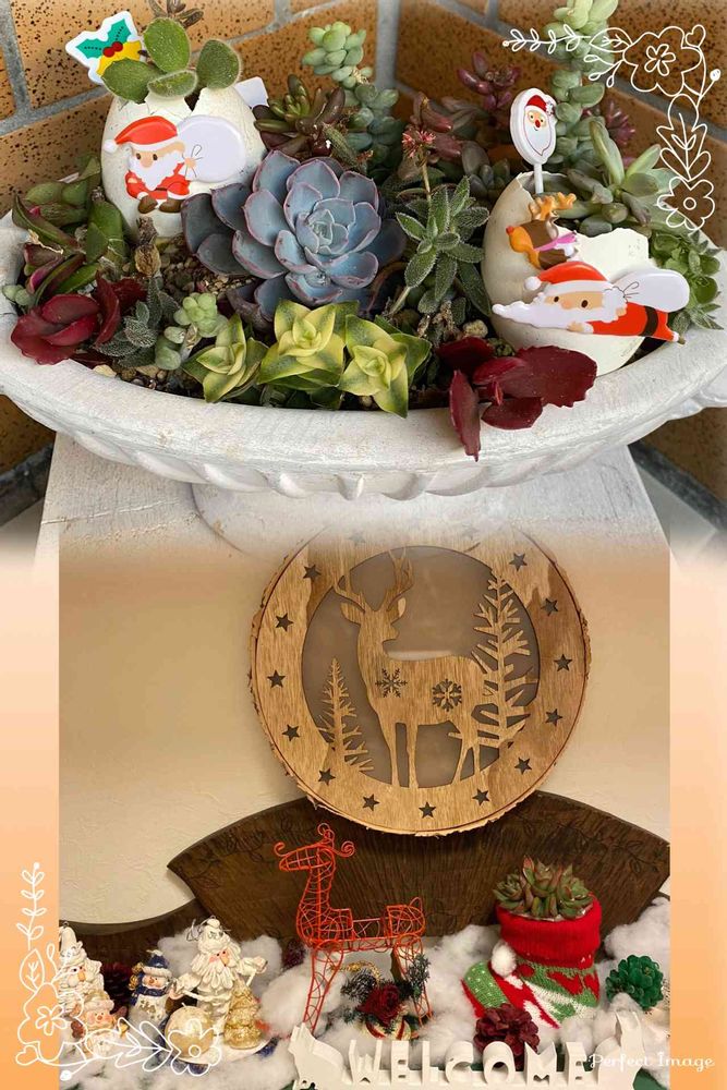 玄関の中は クリスマスイブの多肉をブーツに入れて💓