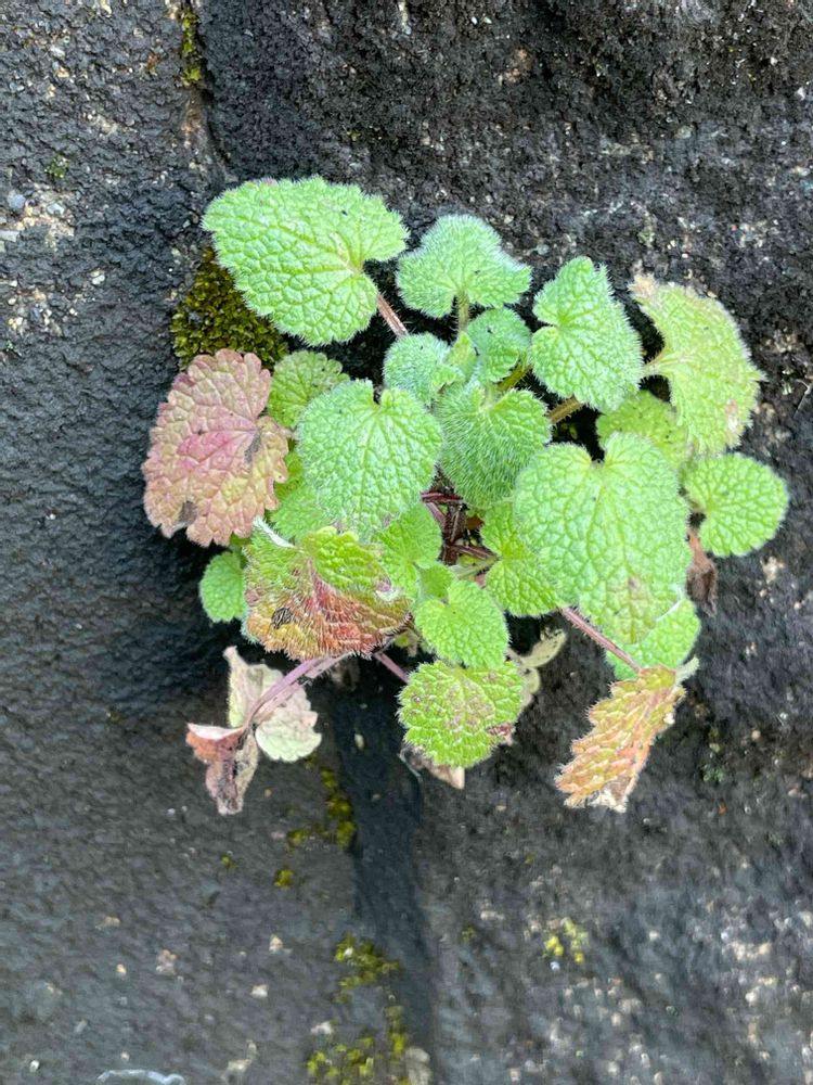 車庫の外塀の隙間に生えていたレモンバーム。種がこぼれて育ったみたいです。今日まで気がつきませんでした😅