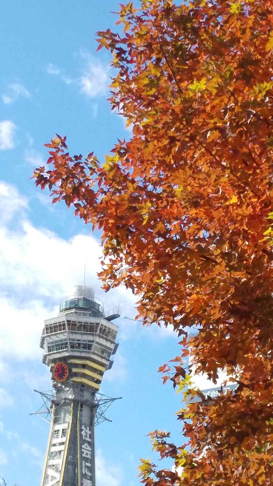 動物園から通天閣と「モミジ」の紅葉が見えます。🗼🍁🤗😊😄🌞✌️