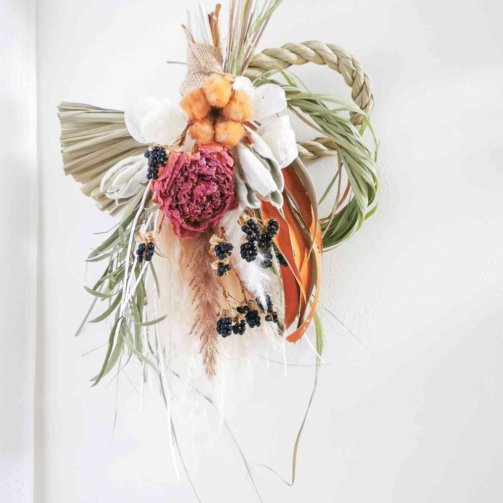 このしめ縄スワッグも、お正月が過ぎたらスワッグとして飾れます