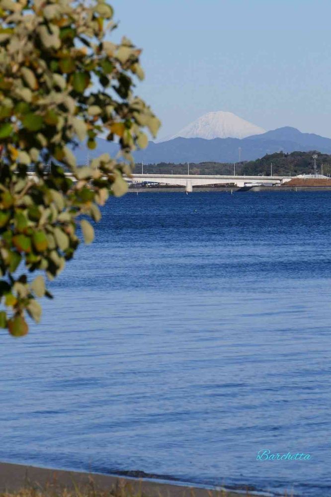 浜名湖湖畔に自生する野生のハマボウです。寒くて風が強いので直線距離125キロ先の富士山がはっきり見えます。