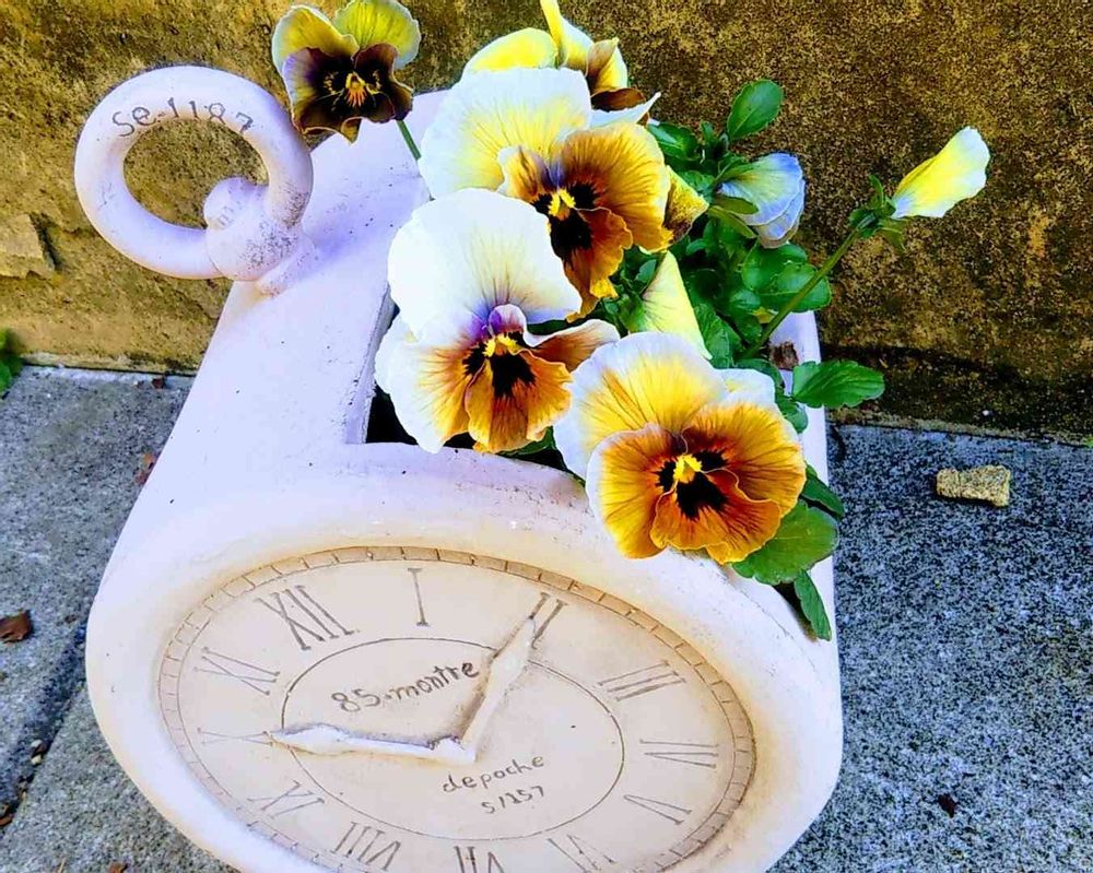 時計プランターはずっと狙っていて、残り少なくなっていましたが、買えて似合うお花も植えられて、よかったです💖