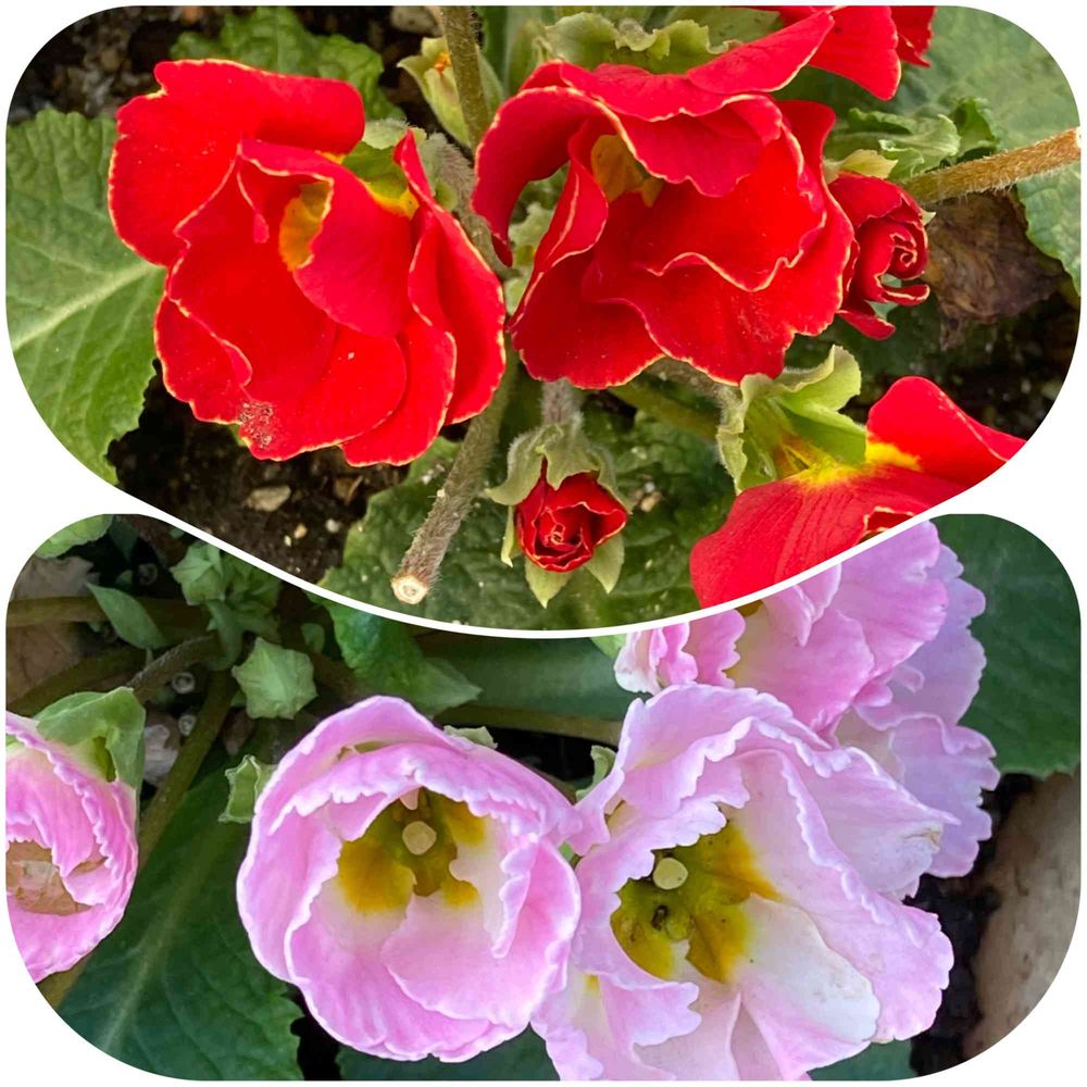プリムラジュリアンのお花です。赤とピンクを合わせてみました。