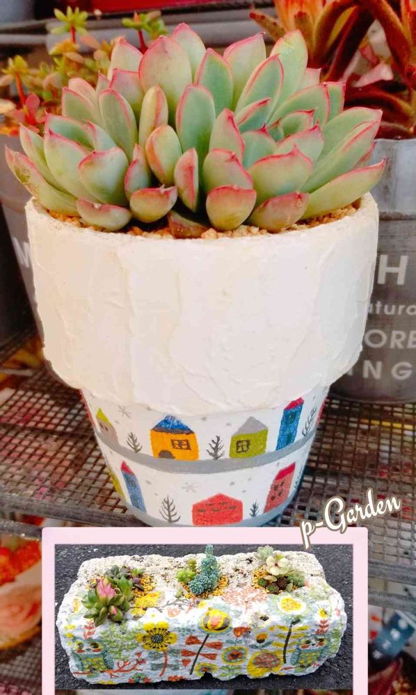 前にお迎えして玄関のポストの重石に可愛いブロック鉢を使ってるんだけど、もう1つ欲しいと行ったら、仕立て直してくれたの(⋆ᴗ͈ˬᴗ͈)”