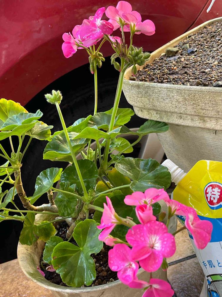 ピンクのゼラニウム元気に花を咲かせてます♪😊👍💐