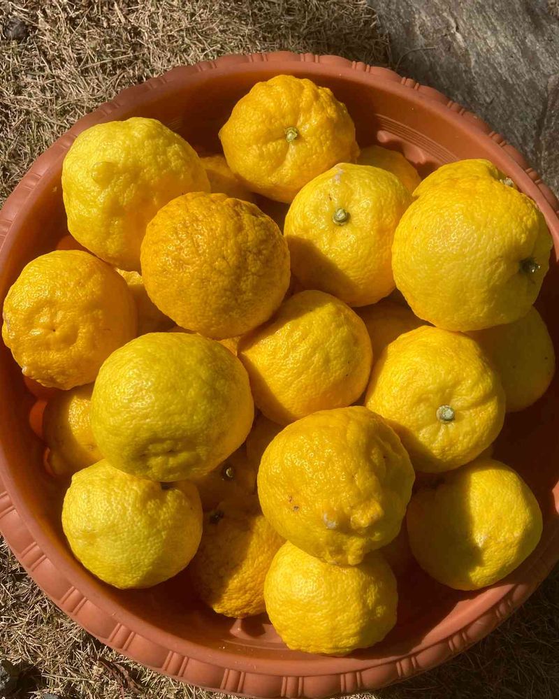 ゆず湯用に収穫。裏年で数が少ないためか昨年より大きいものが多い。