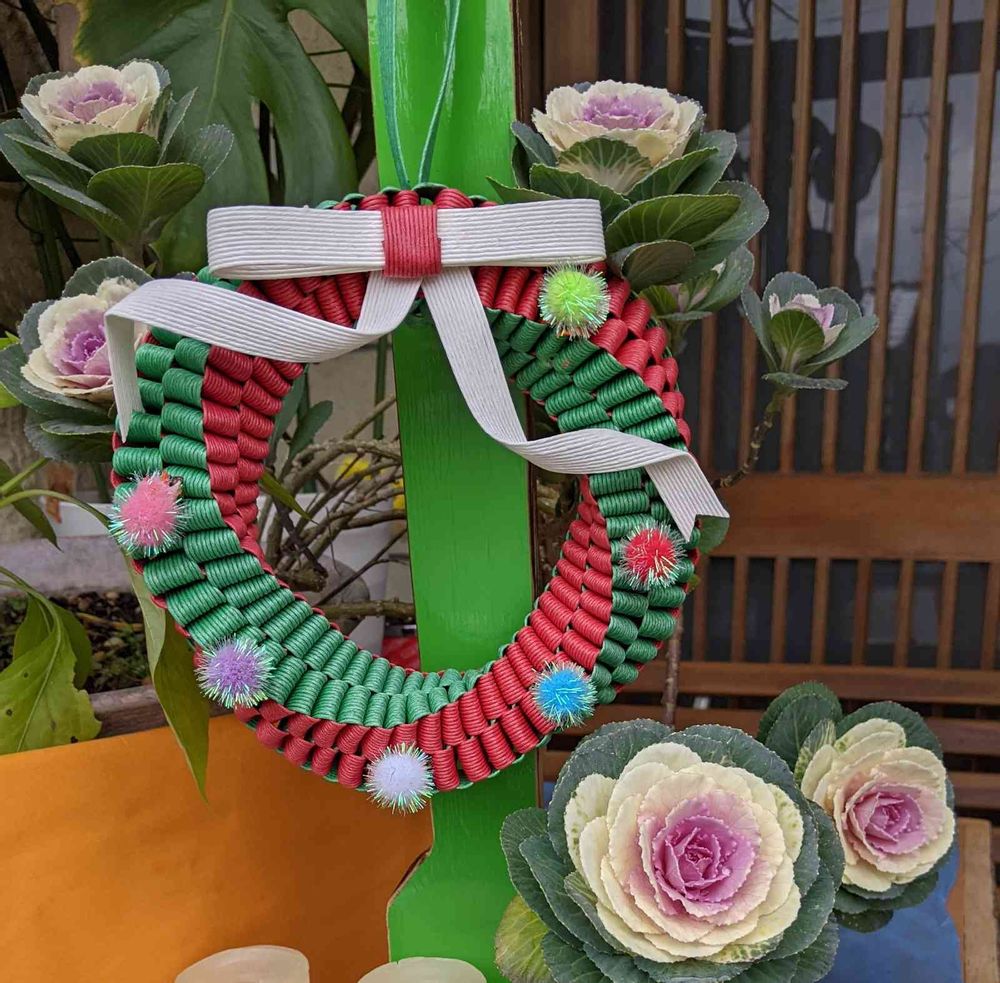 ペーパクラフトのクリスマスリースと飾って見ました💞🌿🎀🤗🤗🤗