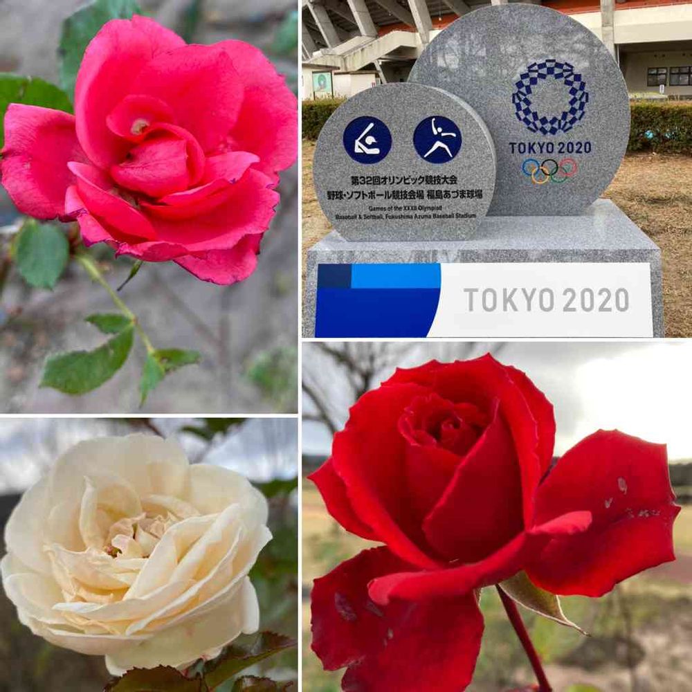 東京オリンピックの石碑と薔薇の花素敵だね🌺