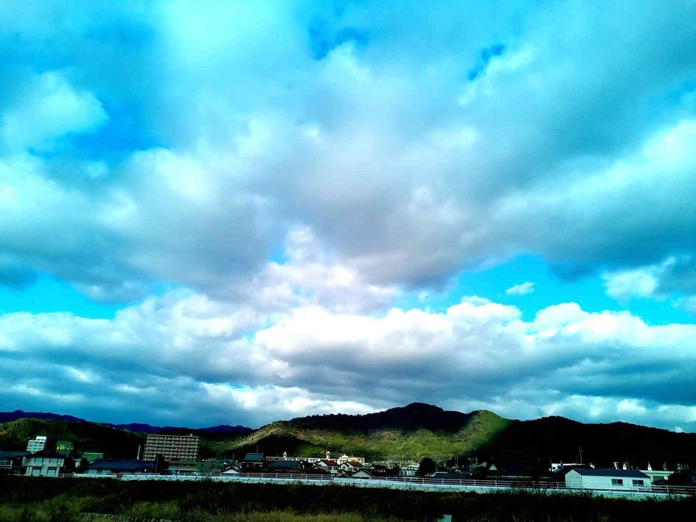 近くの問田川の橋から、空撮り、雲撮りしました。