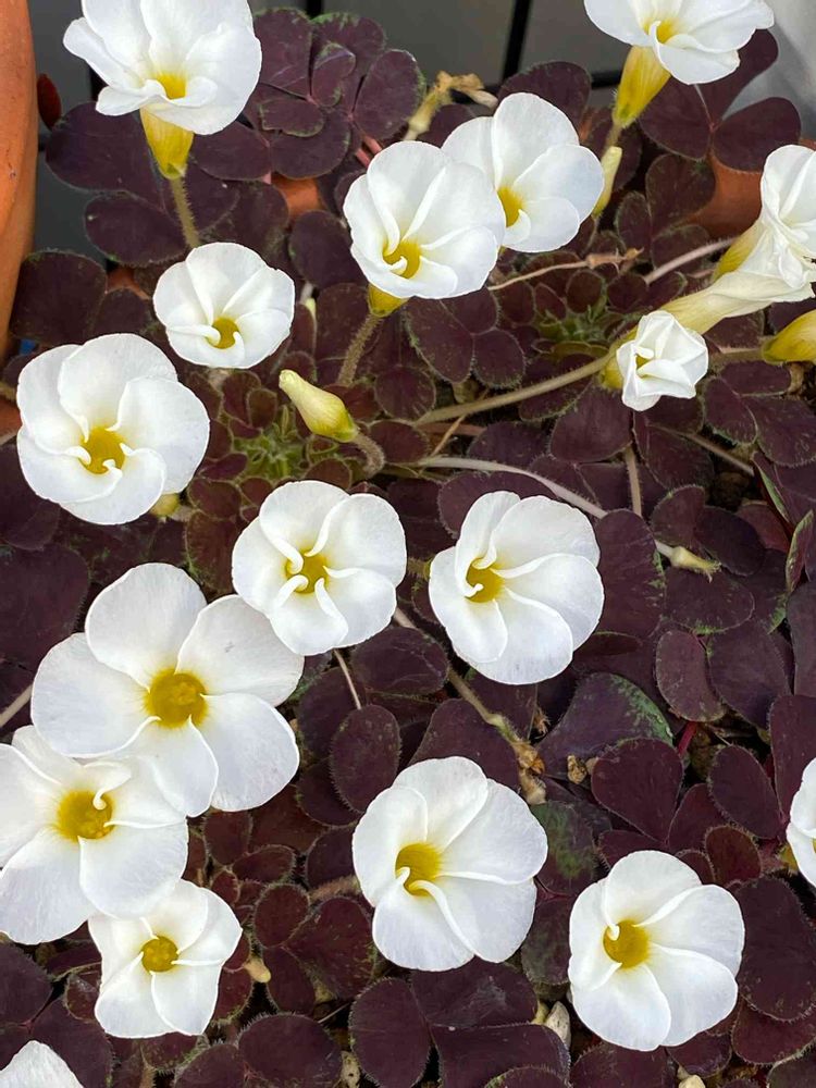 オキザリスを中心に、小さな庭で花を楽しんでいます。
