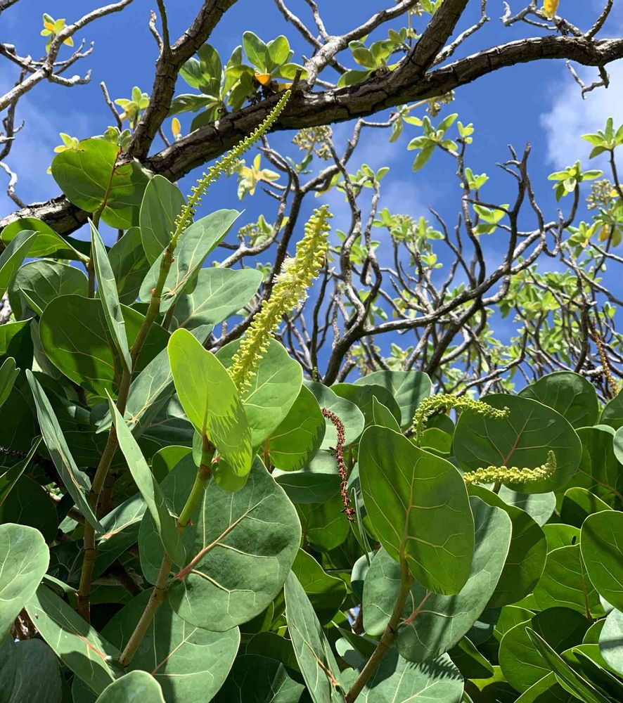 何かわからないのですが、海岸の近くでよく見かけます😊ブドウのような実(次の写真です)が沢山なってました〜