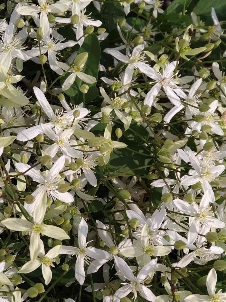 今日のお花クレマチスは世界に300種以上の原種があり 日本には このセンニンソウ(仙人草)のほか カザグルマ(風車) クサボタン(草牡丹) ハンショウヅル(半鐘蔓)など25種が自生しているようです。