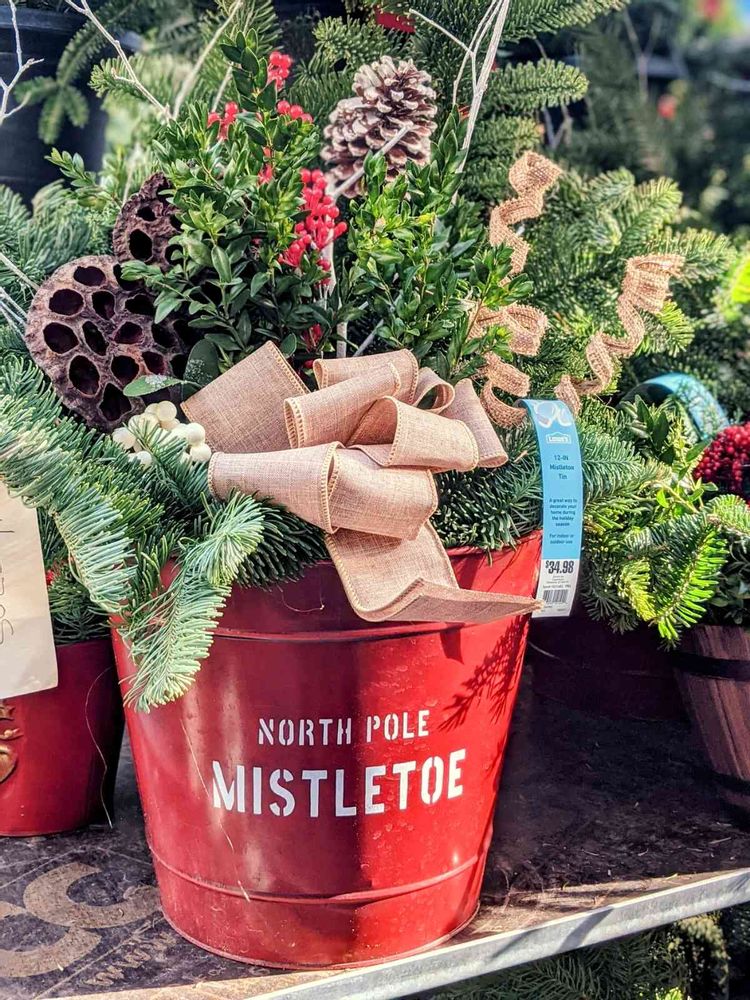 バケツぽい?赤い植木鉢があるので赤いリボン派手でToo Muchでベージュリボンとベージュクルクルを使ったんでしょうね?(🙄想像🧠✨)