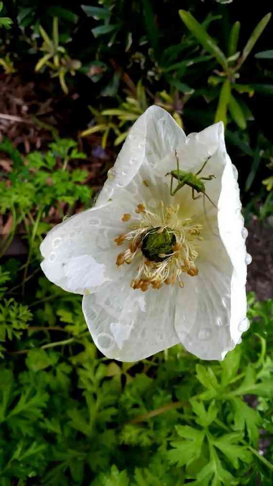 バッタ(ヤブキリ?)よりもスケスケの花びらが気になります(*´艸`*)