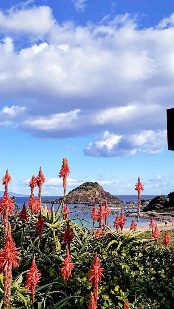 アロエのお花がこんな咲き揃っている風景は珍しいですね。大好きなお花ですが、近くでなかなか見る機会がありません。残念に思っていましたので、とても嬉しいです。