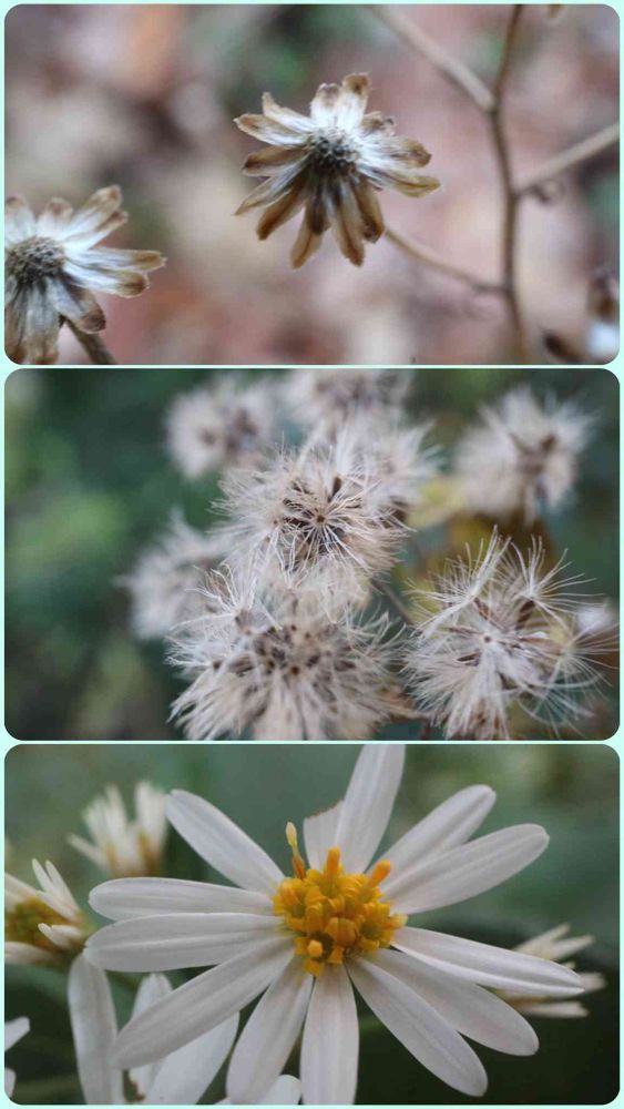 タマバシロヨメナ(珠葉白嫁菜)です。知ってしまえば、ド〜て事はありません。⬇️ 9/14 同じ尾根道で撮った花です。↕️ やがてこんな風に、モフモフになっちゃいます。⬆️ そしてコレが成れの果て。オイラの縄張りで一番多い秋の野菊です。