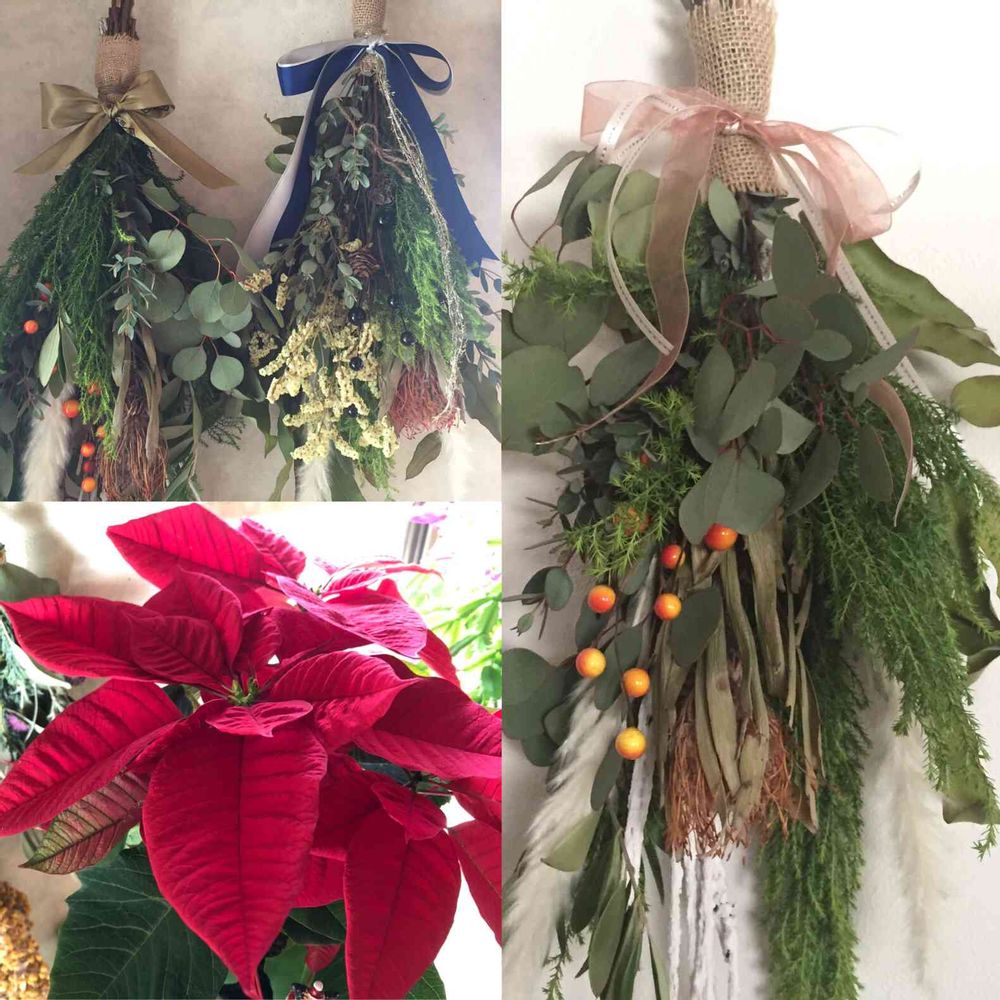 貯めていたドライフラワーと色々アレンジして冬のスワッグ🌿