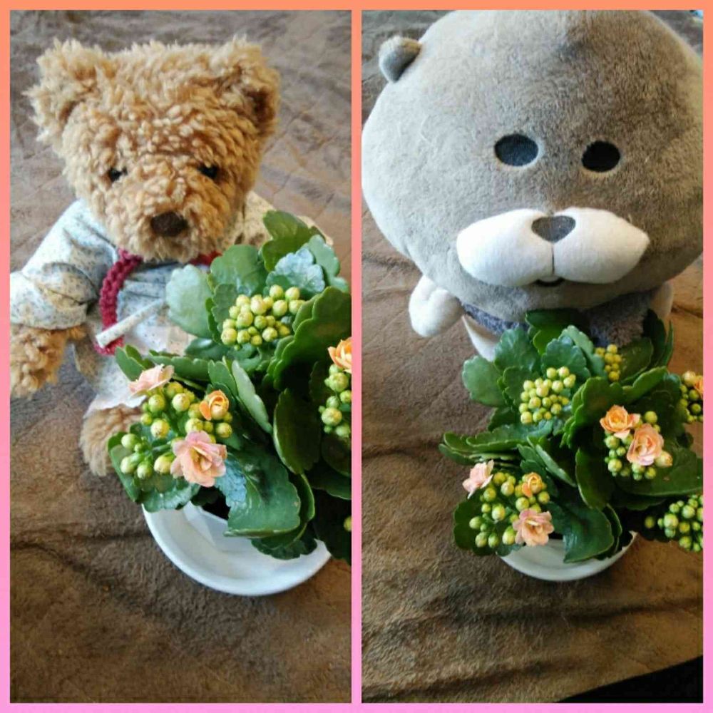 我が家のぬいぐるみとカランコエの🌼