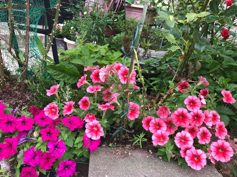 ペチュニアを植えた場所は斜めになっているので垂れ下がる様に咲いてくれました☆