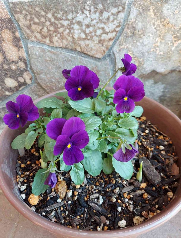 ビオラ💜と寄せ植えしたよりどり球根の芽🌱が数本出てきて👀‼️何のお花かわからないけど早過ぎる😅