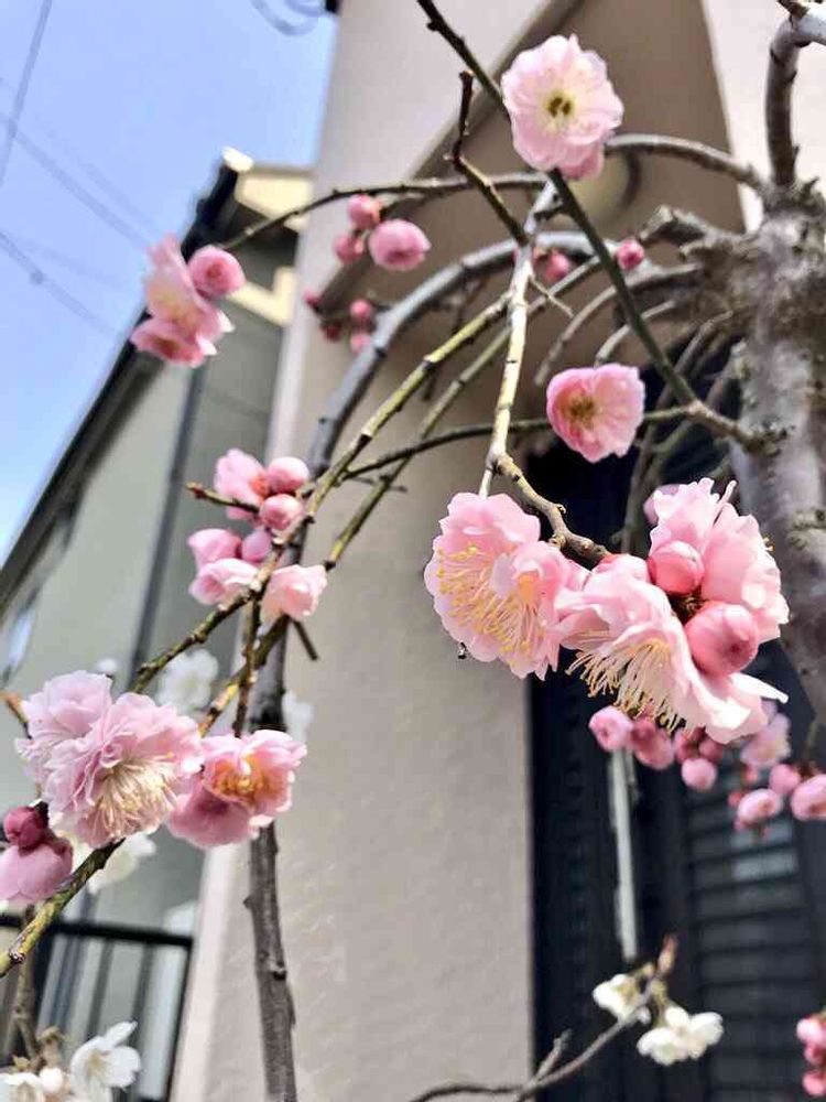 今頃…?と思いますがようやく枝垂れ梅が開花♡甘くて良い香りが漂っております〜(*´•ω•`*)