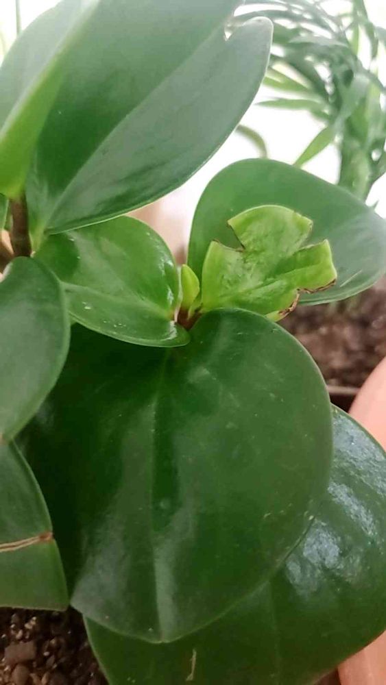 買ってから全く変化のなかったペペロミア、ここにきて新芽出してる🙄