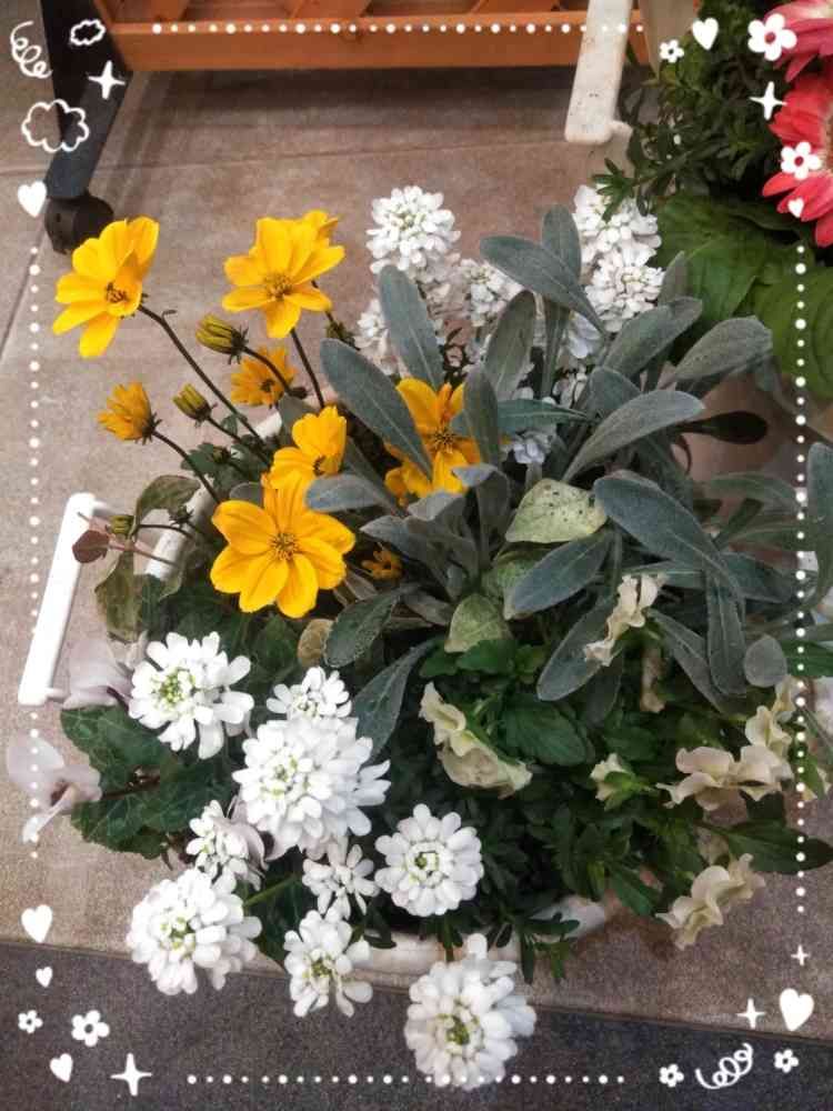 真っ白なイベリスのお花とイエローの🌼お花が寄り添って咲いていて、美しいですネェ✨🌼ビタミンカラーのお花に元気をいただきました✨