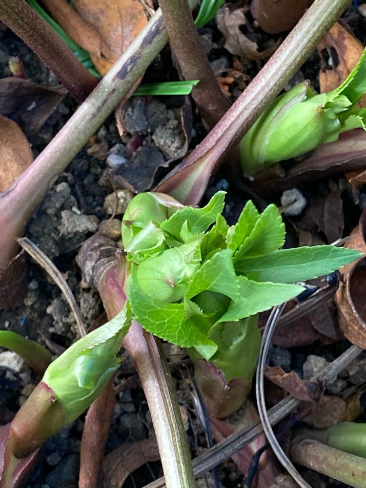 クリスマスローズのつぼみが出てきました。昨年は沢山の白い花を咲かせて見せてくれました。