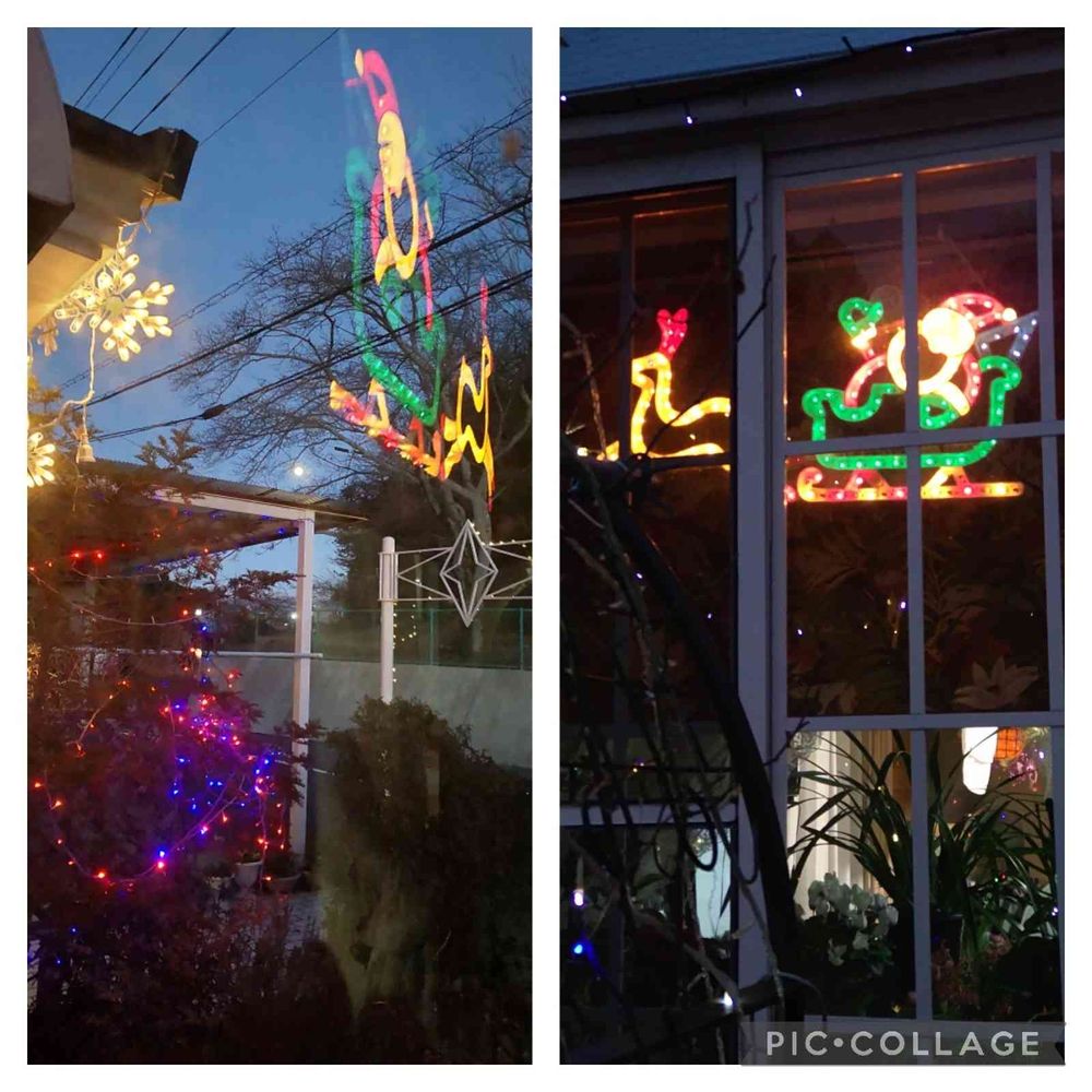 後でその時撮った写真を見てみると、家の中に掛けてある🎅さんのソリが空を飛んでるみたいに写っててびっくり❗