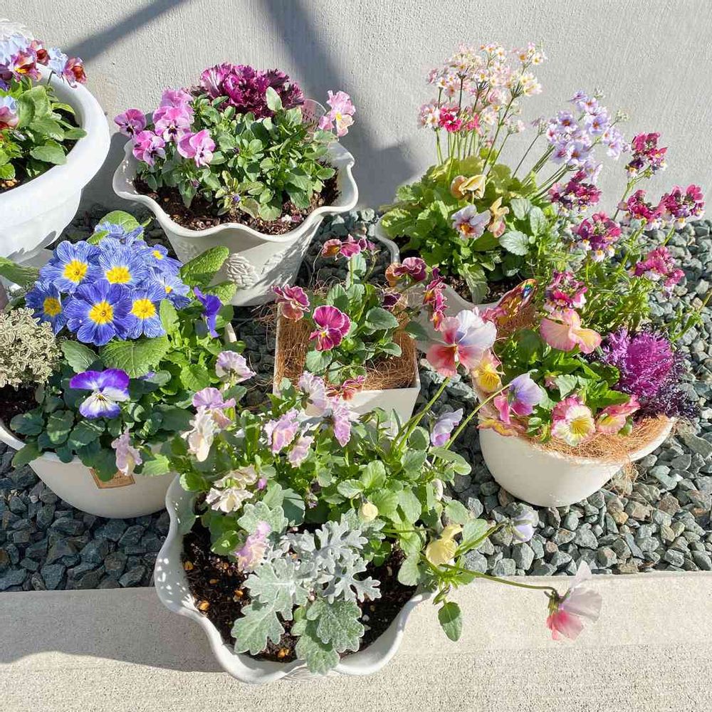 冬のお花の寄せ植え🌸素敵です。
