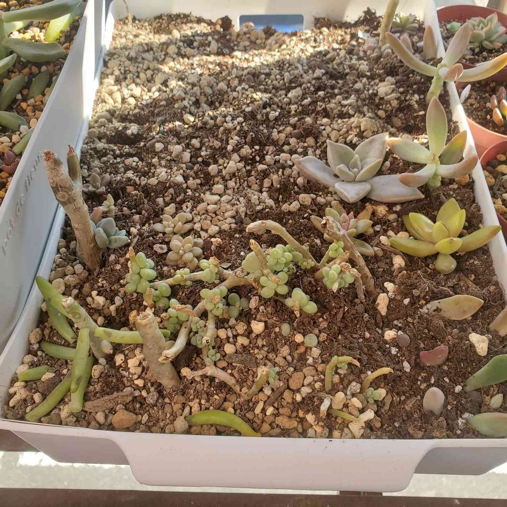 |qω・) 2021年9月から多肉Life♡ 韓国🇰🇷苗大好き♥ 一気に購入し、名札を捨てた物が多いので分からない多肉が沢山(*ノω<*) ご存知の方は教えて下さい♪ 【育成環境】 私の家にはベランダが無く外壁フラワーボックス(長い)が南・西に設置と南・西窓際(室内)の環境で多肉Lifeしています ♡(๑´ฅฅ‵๑) 野外多肉棚はプレステラ105で多肉育成㊥ 初の葉挿し、胴切りに挑戦㊥(๑•̀ •́)و❁ 分からない事だらけなので皆様の投稿でお勉強㊥です。\_( ゚ロ゚)