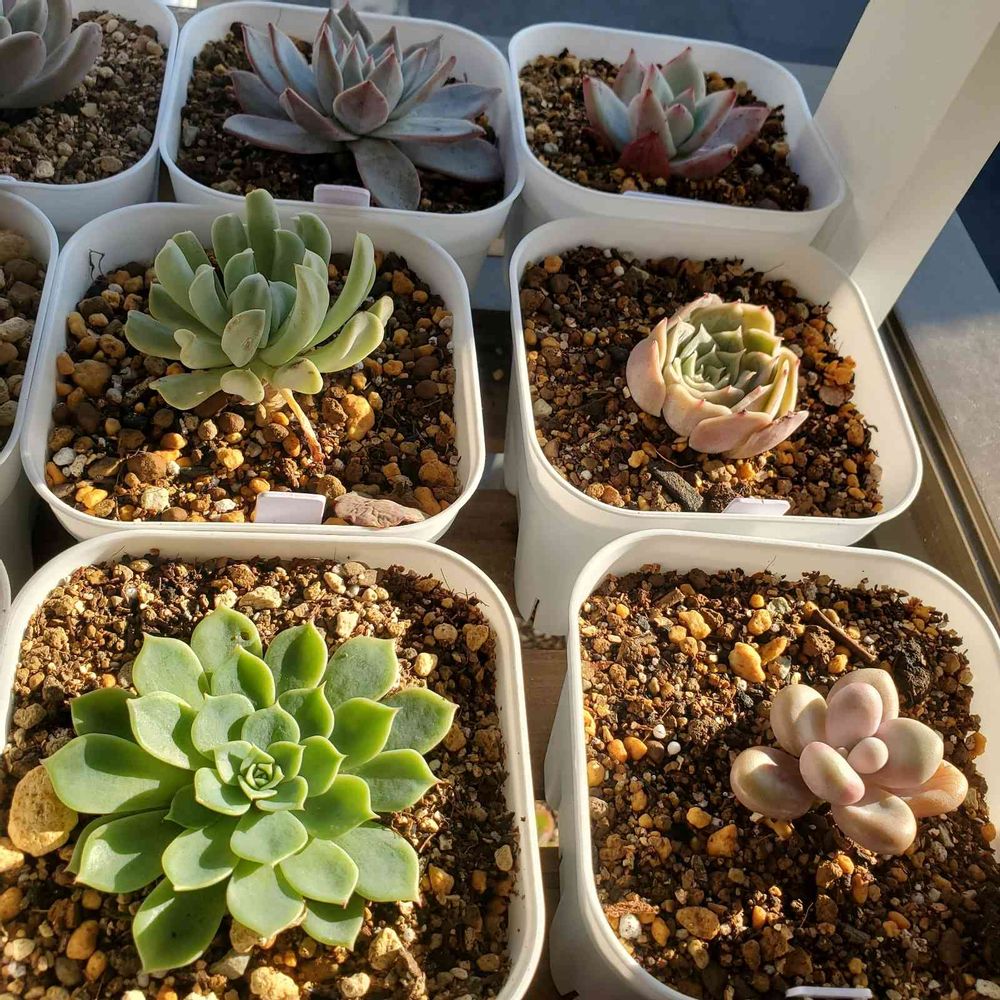 |qω・) 2021年9月から多肉Life♡ 韓国🇰🇷苗大好き♥ 一気に購入し、名札を捨てた物が多いので分からない多肉が沢山(*ノω<*) ご存知の方は教えて下さい♪ 【育成環境】 私の家にはベランダが無く外壁フラワーボックス(長い)が南・西に設置と南・西窓際(室内)の環境で多肉Lifeしています ♡(๑´ฅฅ‵๑) 野外多肉棚はプレステラ105で多肉育成㊥ 初の葉挿し、胴切りに挑戦㊥(๑•̀ •́)و❁ 分からない事だらけなので皆様の投稿でお勉強㊥です。\_( ゚ロ゚)