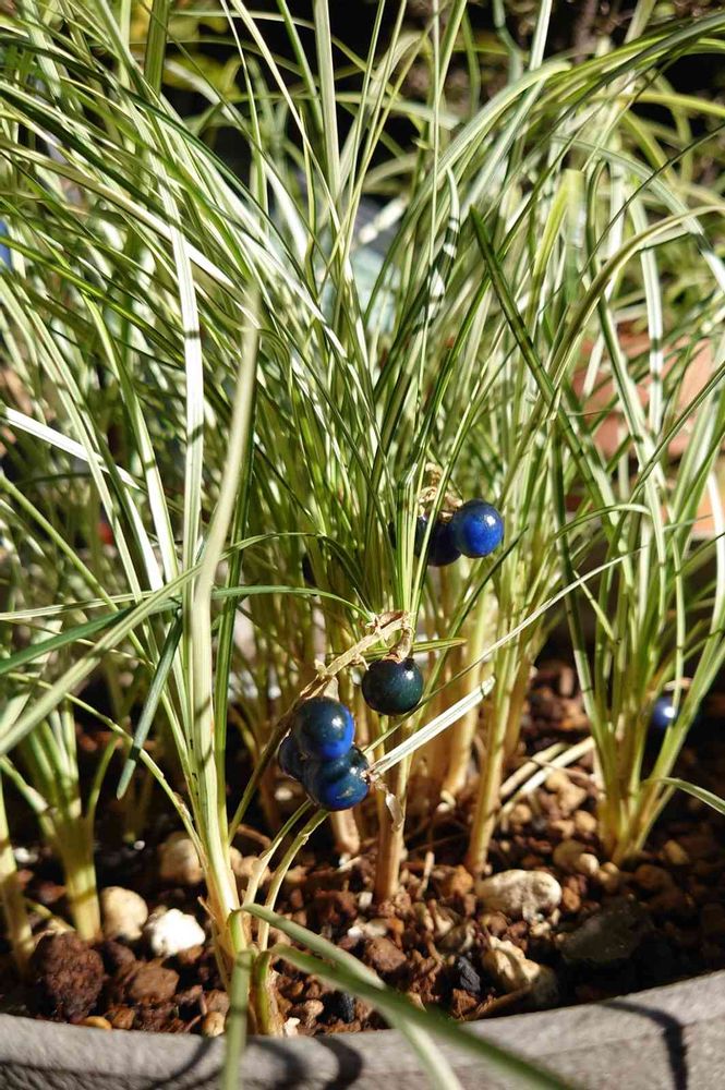 先月の下旬にグロリオサの植え替えを投稿した時に同じ鉢に茂っていた白竜(ジャノヒゲ)