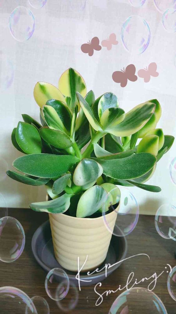 かわいい ツヤツヤ✨の斑入りの金のなる木さん💕