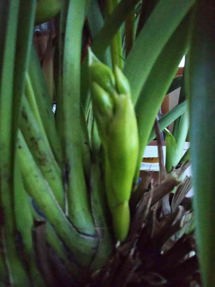 シンビジウム「プリティキュア」Bさん、Aさんと同じ鉢現在10cmに伸びました。Aさんの反対側にいます。購入してから隔年で咲いてます。今年は初めて二つ咲いてくれる見たいです😉連投です❗️二刀流ではありません。シンビジウム😊こんな寒い時期に花芽伸ばす🙂ただ者じゃないよね。👴はコタツで足伸ばす🎵