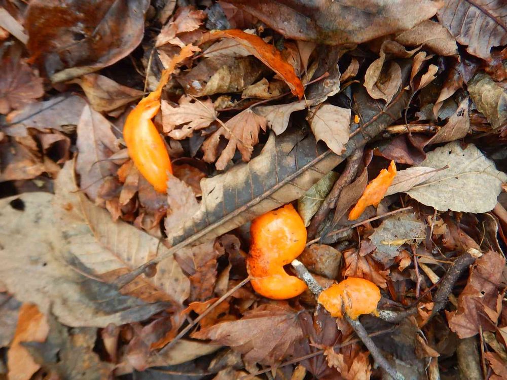 犯人は、木登り上手で、しかも器用に柿の皮を残して食べる能力のある動物とみた!😋