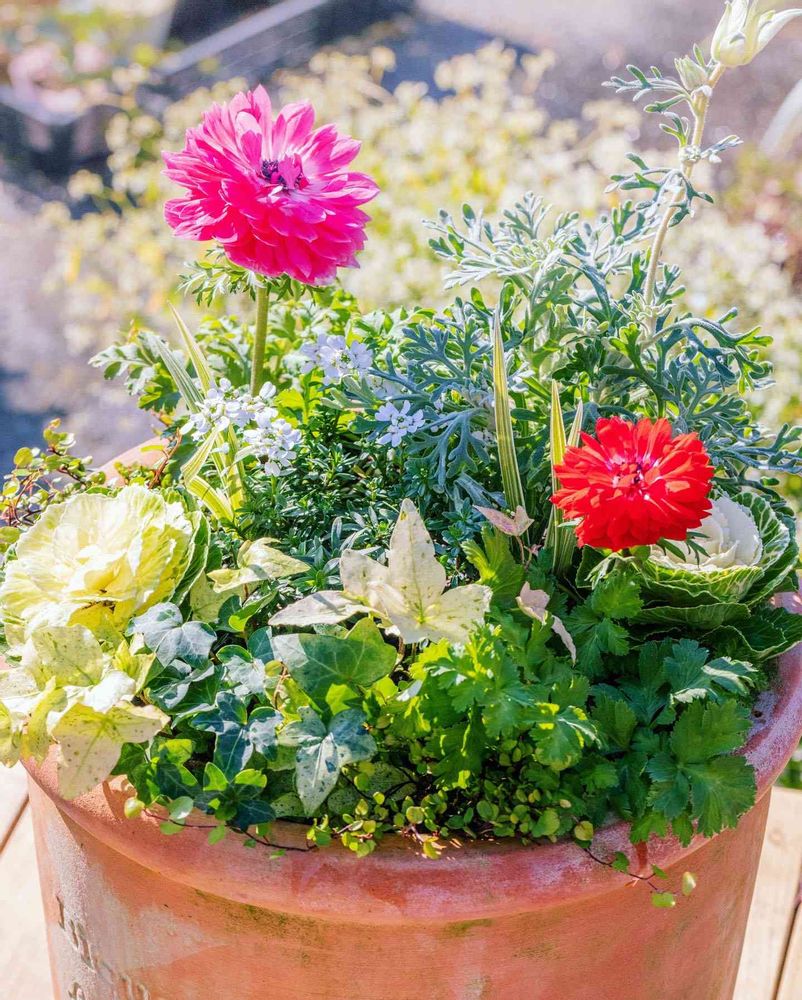 葉牡丹にイベリス、フランネルフラワーを寄せ植えてみました😆♪
