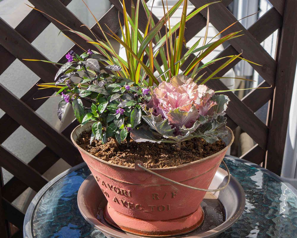 1月/寄植え〜ブラックパール、葉牡丹、ドラセナコンシンネ