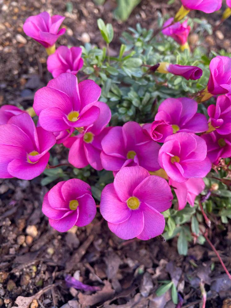 日中の陽気に誘われて、オキザリス 桃の輝きも開花!お庭でピンクのヒラヒラがクルクル回ってる♪