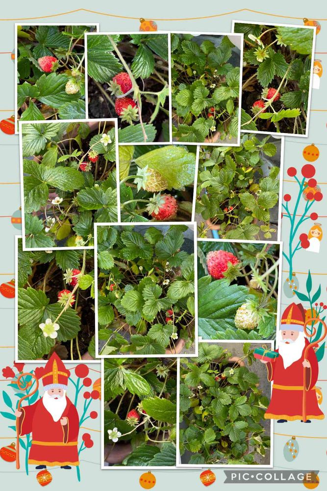 プランターで育てていて、見えるところは葉っぱと思っていたら、今朝ふっと見ると、赤や白のイチゴ🍓が奥に隠れていた!