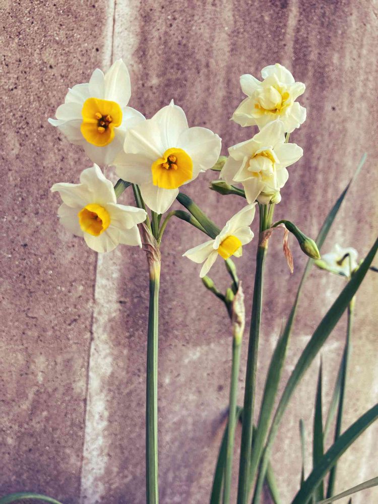 調べたら、ニホンスイセンは冬に咲くらしく、ラッパ水仙とかのかわいこちゃんは春咲きみたいです。