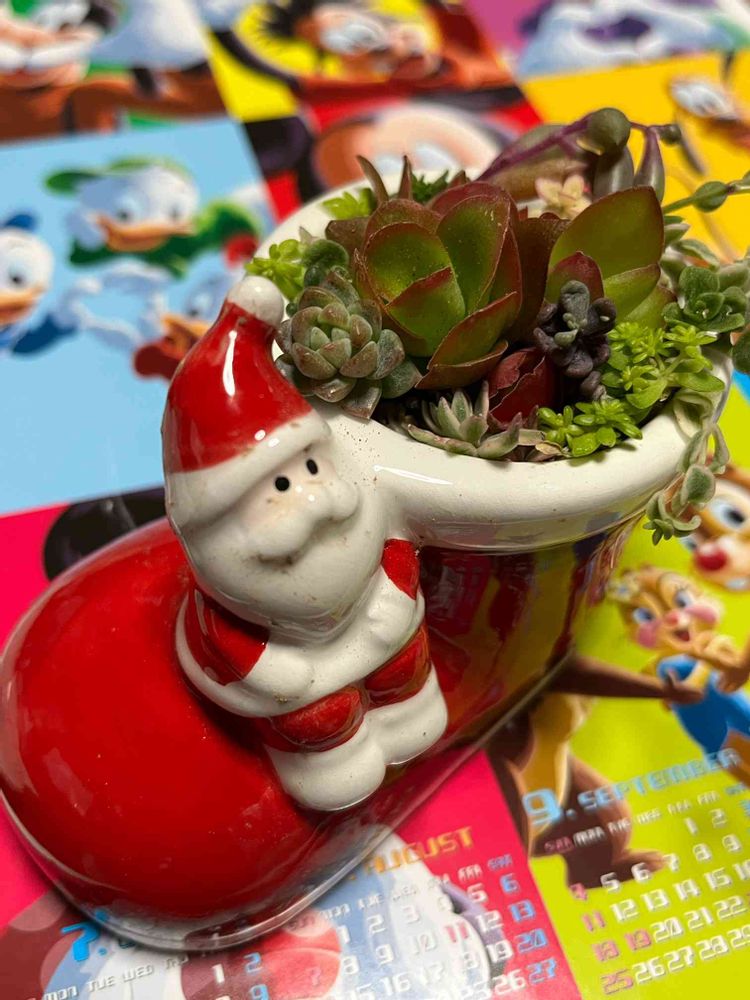 お正月の飾りの中に、サンタ鉢混ざっています😬