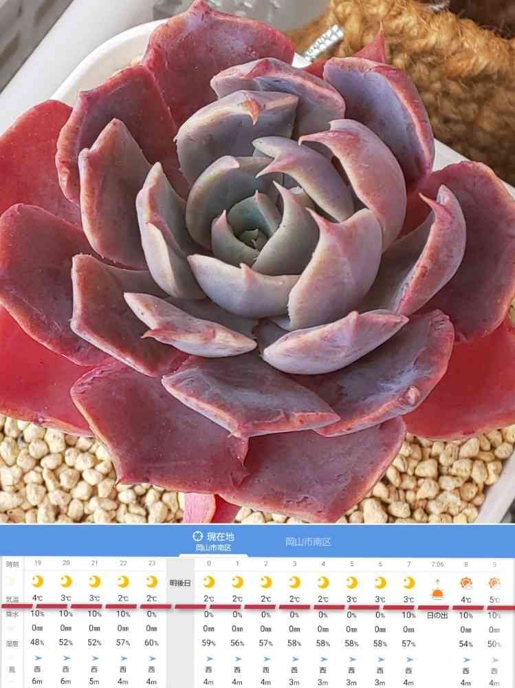 寒波って、大したことのない予報気温の寒波でも舐めたらアカンです。何故かと言うと「最低もしくは最低に近い気温がダラダラ長時間続く」のが寒波だからです😱しかも、予報気温が自分ちの多肉の置き場所の温度と同じじゃないんでね。それを普段から知っておくこともポイントですな。
