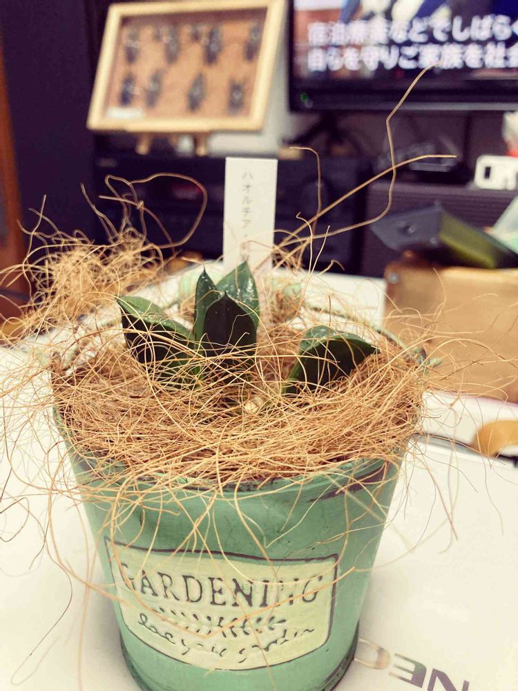 購入した時は葉があと5.6枚あり大きめの信楽焼きの鉢に植わってました。土が多すぎて水やり後3日以上乾かないので葉がジュレって減りました(〃ω〃)