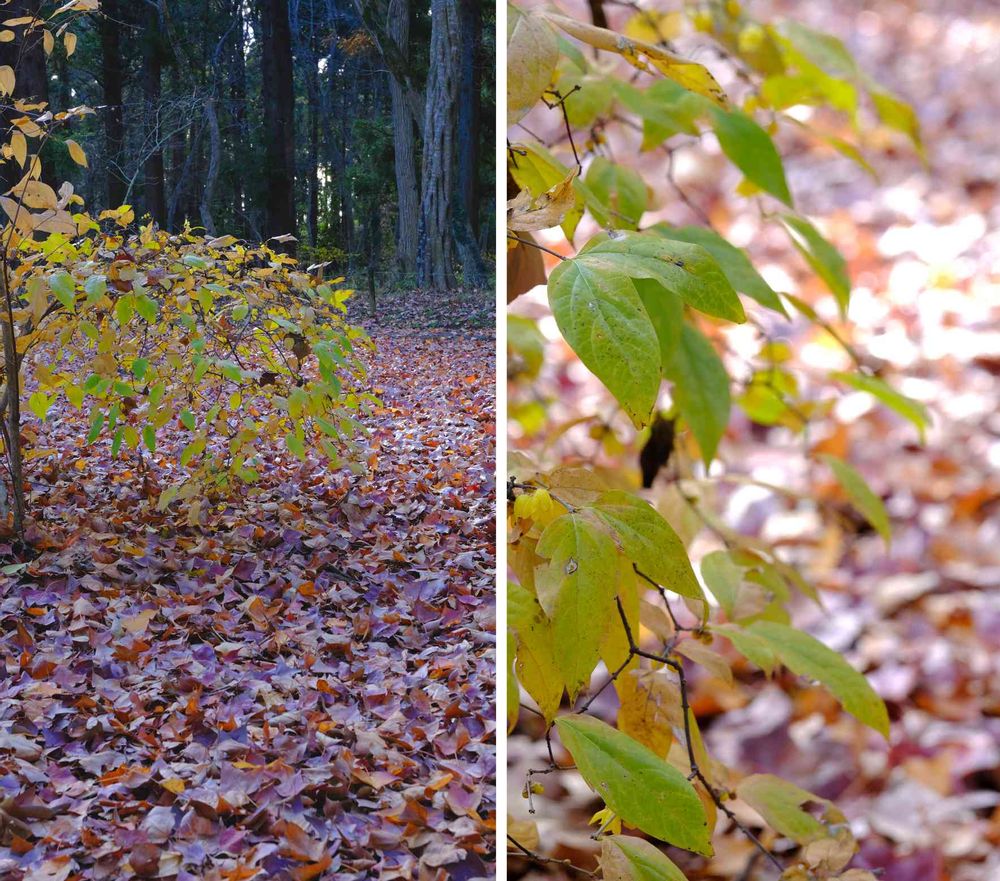 他の場所にも蠟梅はありますが、これだけが葉がきれいでした。