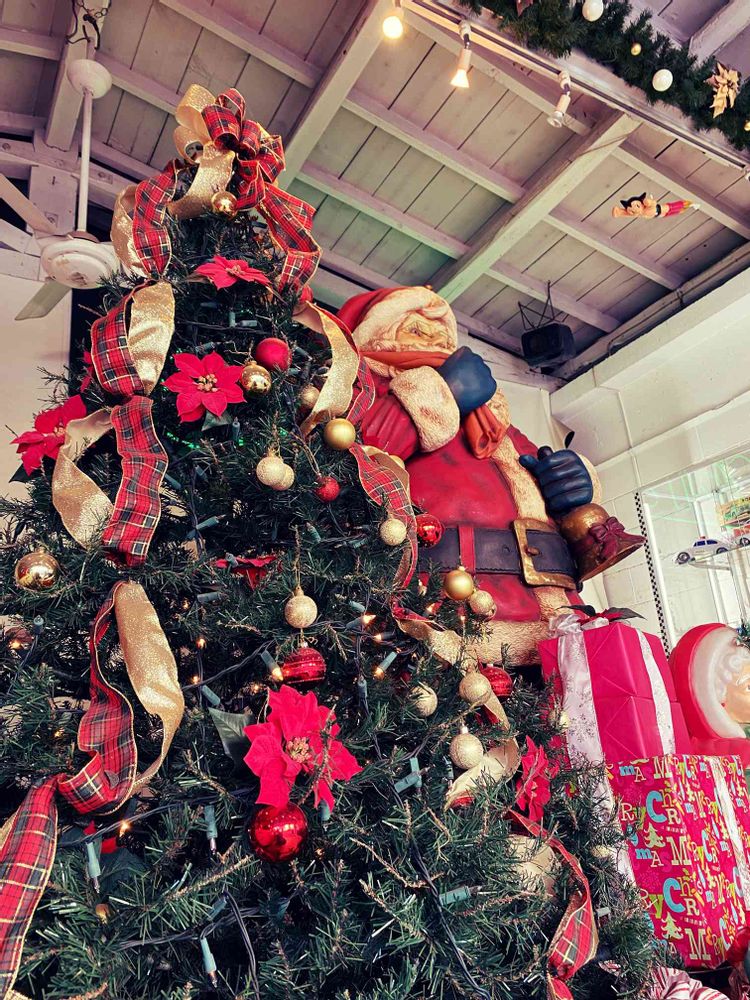 帰りに一年中クリスマスのお店によってきました。ビックツリーとビックサンタの隣りは、写ってないけどミッキーがアメ車を運転しています。ミッキ〜❣️となりに乗せて〜💕ミニーがいないのでアピールしときました。アトムにしっかり見られてたけど、心優しいから見て見ぬふりしてくれることでしょう